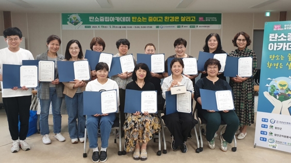 [금요저널] 함안군자원봉사센터는 지난 31일 탄소중립, 자원순환 등 환경분야 전문지식을 갖춘 지역사회 환경리더 양성교육을 마치고 탄소중립아카데미 수료식을 개최했다.