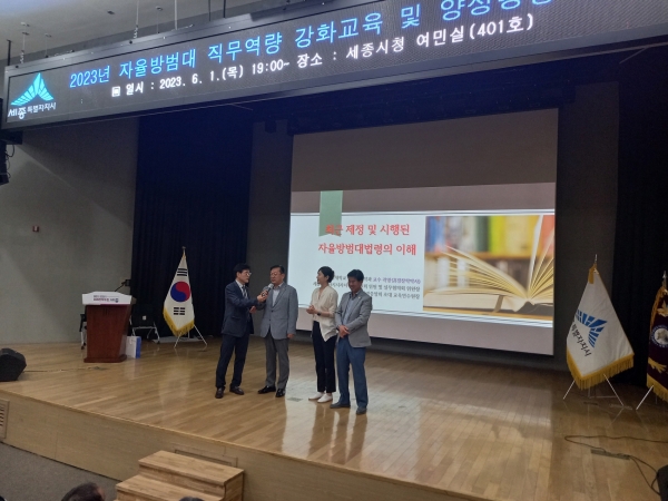 [금요저널] 세종특별자치시가 지난 1일 시청 여민실에서 세종시 자율방범대연합회를 대상으로 ‘2023년 자율방범대연합회 직무역량강화 및 양성평등 교육’을 개최했다.