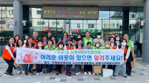 캠페인에는 관계기관인 부평중부종합사회복지관, 부평구 노인인력개발센터, 부평구 자원봉사센터 회원 등 30여명이 동참했다협의체 위원들은 부평2동을 3개 권역으로 나눠 주민들을 만나고 상가들을 가가호호 방문해 ‘어려운 이웃이 있으면 알려주세요’라는 문구가 적힌 현수막과 명함을 비치했다.
