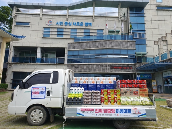 진위 맞춤형 이동마트 사업은 매달 관내 12개 마을을 대상으로 라면, 김 등 식료품과 휴지 등 생필품을 트럭에 싣고 나가, 거동 문제로 시내에 나가 장을 보기 어려운 홀몸어르신들이 무료로 물품 구매할 수 있도록 지원하는 사업이다.