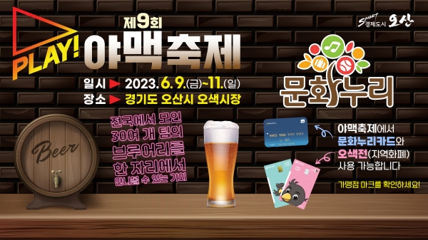[금요저널] 오산시는 오는 9일부터 11일까지 3일간 오산 오색시장에서 열리는 제9회 2023 PLAY 야맥축제에서 문화누리카드를 사용할 수 있다고 알렸다.
