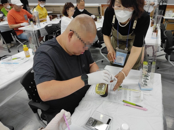 이번 활동은 디퓨저에 사용되는 각 향료의 효능과 활용법을 교육했으며 특강이 끝난 뒤에는 각자 본인에게 맞는 향료를 골라 직접 디퓨저를 만들어 보는 체험을 진행했다.
