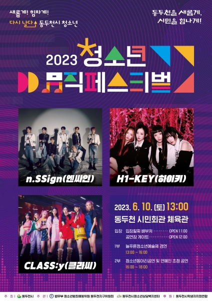 [금요저널] 동두천시는 오는 6월 10일 오후 1시부터 오후 6시까지 시민회관에서 지역 청소년 및 일반시민을 대상으로 ‘2023년 청소년 뮤직페스티벌’을 개최한다.