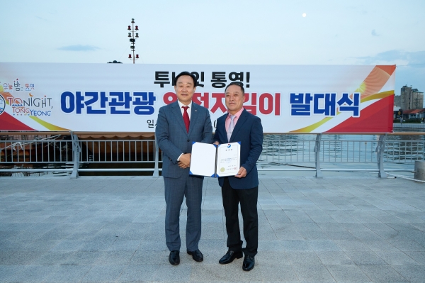 [금요저널] 통영시는 지난 6월 2일 야간에도 안심하고 관광을 즐길 수 있는 여건을 조성하고자 야간관광 안전지킴이 발대식을 강구안 일원에서 개최했다.