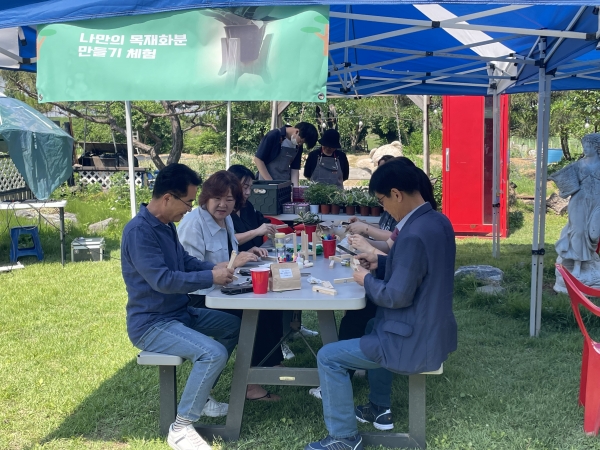 팜파티에 참여한 가족들은 나만의 목재 화분 만들기, 나무 샤프 만들기 체험을 하고 치유 음악회를 즐겼다.