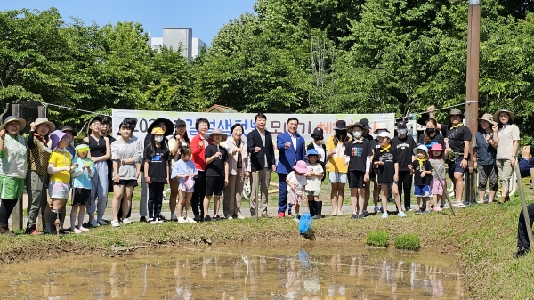 [금요저널] 부평구는 지난 3일 갈산근린공원에서 지역 주민들과 함께 ‘모내기 체험행사’를 진행했다.