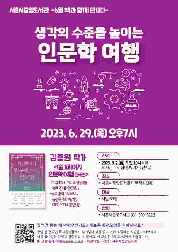 강연은 6월 29일 저녁 7시 시흥시중앙도서관 다목적실에서 운영된다.