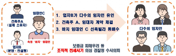 국토부 수사의뢰 등을 토대로 ‘무자본 갭투자’ 보증금 편취, 전세자금 대출사기 등 대규모 전세사기 조직 31개를 적발하고 6개 조직에 대해는 형법상 ‘범죄단체·조직죄’를 적용했다.