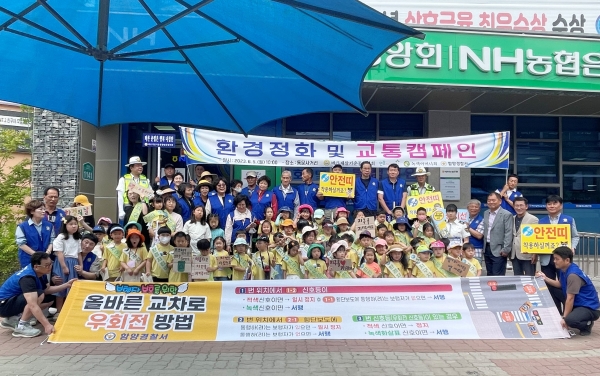 [금요저널] 바르게살기운동함양군협의회 청년회는 5일 오전 10시 함양읍 동문사거리에서 바르게살기 회원과 연꽃어린이집 어린이, 함양경찰서 직원 등 70여명이 참여해 교통안전 캠페인을 실시했다.