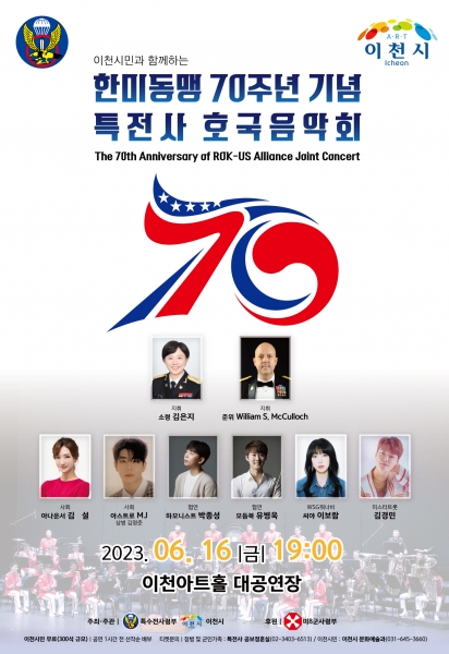 [금요저널] 이천시와 특수전사령부는 오는 6월 16일 오후 7시, 이천아트홀 대공연장에서 ‘한미동맹 70주년 기념 특전사 호국음악회’를 개최한다.