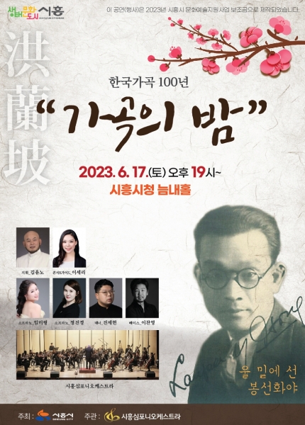 [금요저널] 시흥시가 주최하고 시흥심포니오케스트라가 주관하는 한국가곡 100년 ‘가곡의 밤’이 오는 17일 오후 7시, 시청 늠내홀에서 열린다.