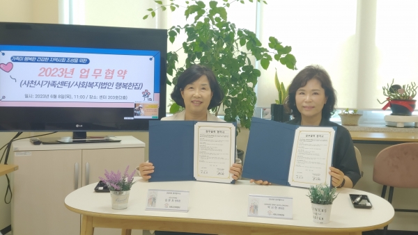 [금요저널] 사천시가족센터는 지난 8일 사회복지법인 행복한집 사천노인복지센터와 지역사회 복지발전을 위한 공동사업 추진과 가족복지서비스 제공을 위한 업무협약을 맺었다.