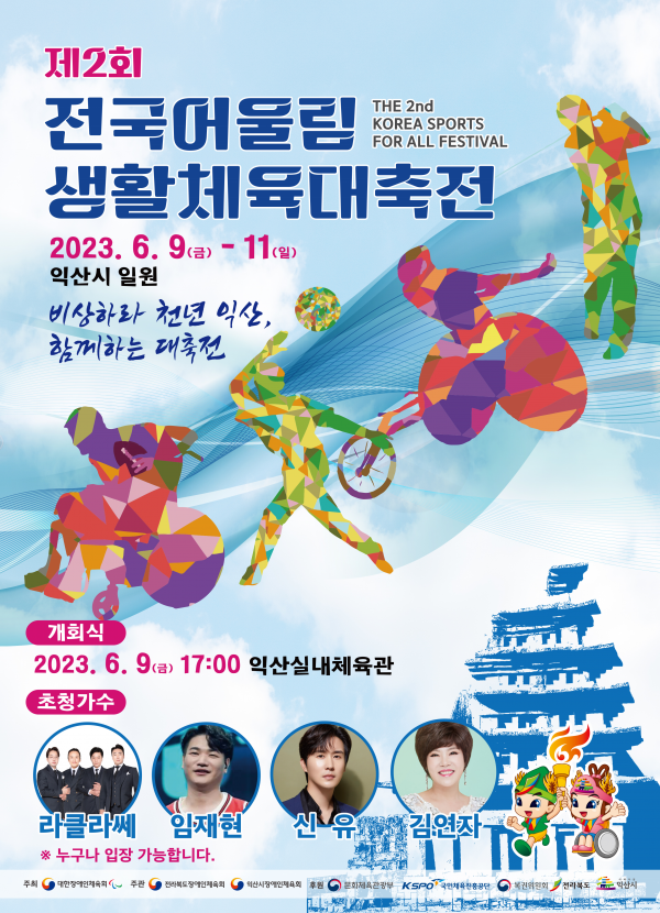 [금요저널] 문화체육관광부가 후원하고 대한장애인체육회가 주최, 전라북도장애인체육회와 익산시장애인체육회가 주관하는 ‘제2회 전국어울림생활체육대축전’이 6월 9일부터 11일까지 전라북도 익산시 일원에서 열린다.