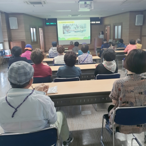 이날 강의는 교육 전 혈압, 혈당, 콜레스테롤, 혈관 나이 측정 및 검사를 진행하고 강의 중간 퀴즈 시간을 통해 지역주민들의 집중도와 흥미도를 높였다.