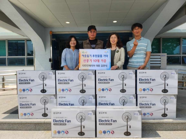 [금요저널] 다인인테리어에서 지난 2일 관고동행정복지센터로 이웃 돕기 성품으로 선풍기 10대를 기탁했다.