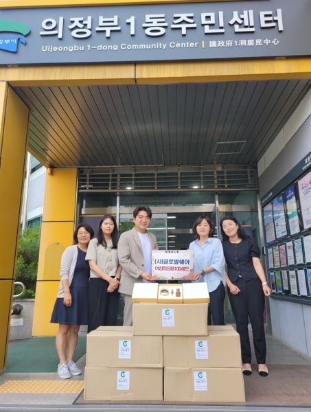 [금요저널] 의정부시 의정부1동주민센터는 사단법인 글로벌쉐어가 6월 8일 소외계층을 위한 2천500만원 상당의 여성화장품 100세트를 기탁했다고 밝혔다.