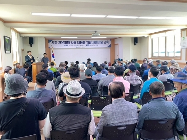 오상진 강사는 “나무 세력을 안정적으로 유지하기 위해서는 여름철 나오는 신초을 잘 유인하고 수세가 너무 강할 경우 당근 또는 환상박피를 병행해야 하며 또한 여름가지치를 통해 이듬해 꽃눈이 잘 형성되도록 유도해야 한다”고 말했다 군 관계자는 “이상기후로 인한 피해가 해마다 심해져 농가에서 관리가 어렵겠지만 내년도 농사를 위해 수세 안정화, 병해충 관리에 더욱 주의를 기울여 주시고 사후에 대응할 수 있도록 기술지원에 최선을 다하겠다”고 말했다.