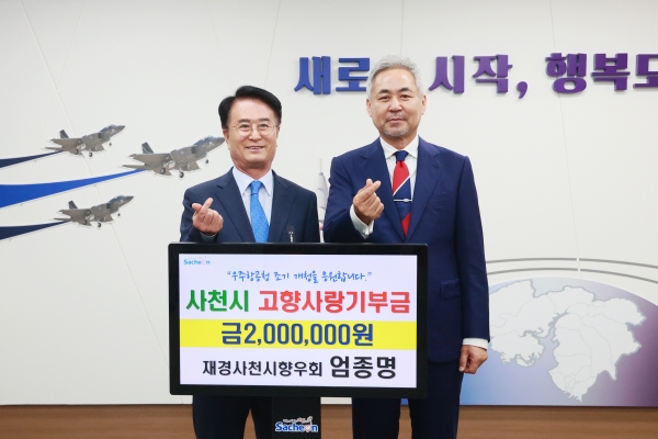 9일 사천시에 따르면 재경사천시향우회 엄종명 씨가 ‘우주항공청 개청’과 ‘고향 발전’을 위해 사용해 달라며 200만원을 기탁했다.