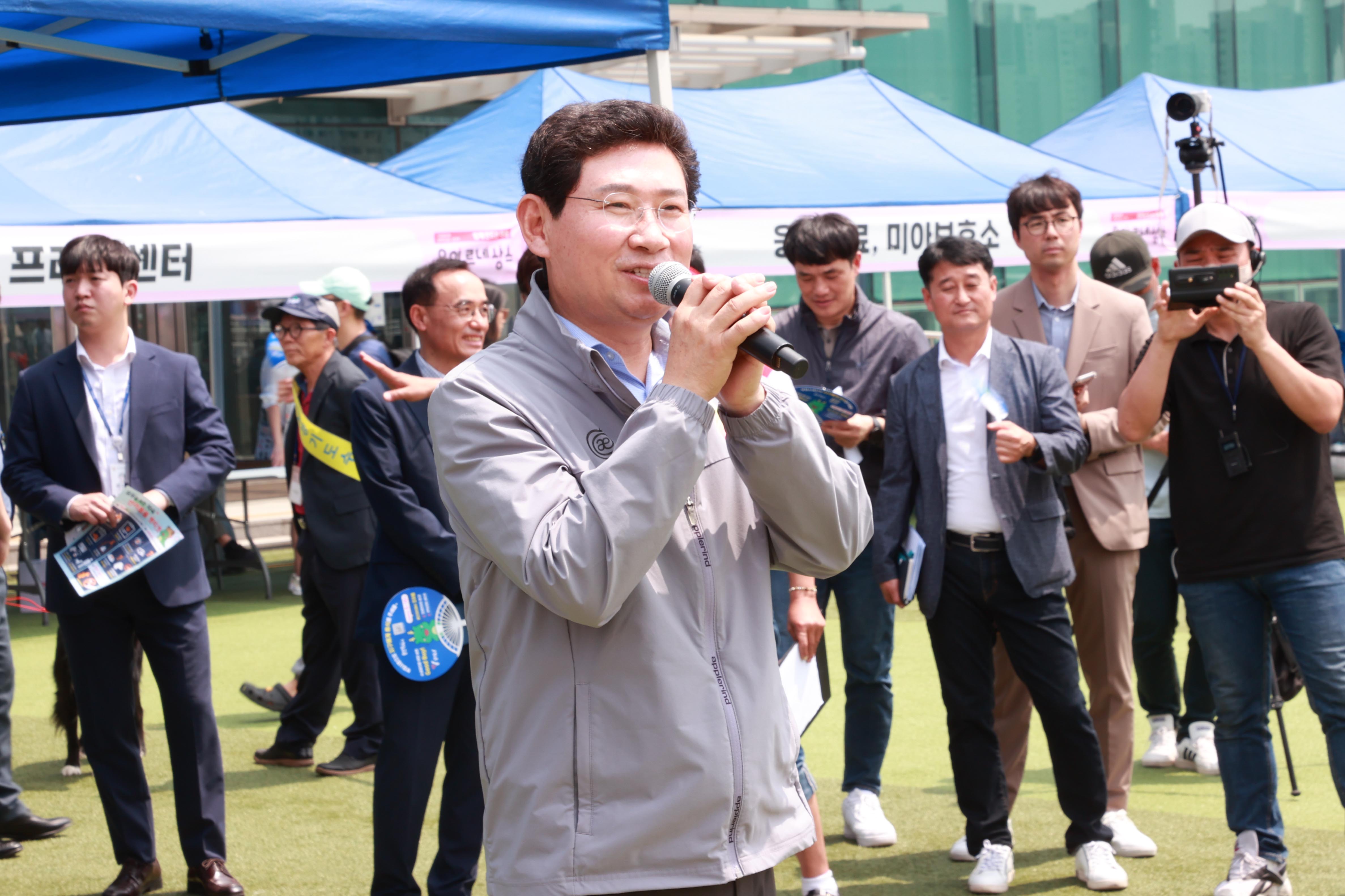 이상일 용인특례시장은 유기동물 보호와 환경개선 필요성을 방문객들에게 알리는 용인시동물보호센터와 동물단체 관계자들을 만나 의견을 경청하고, 유기동물 입양 캠페인에 동참했다.