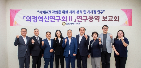 용인특례시의회의 위상을 높이기 위해 지방의회 권한 확보와 자치분권 강화 방안을 연구하고 있다.