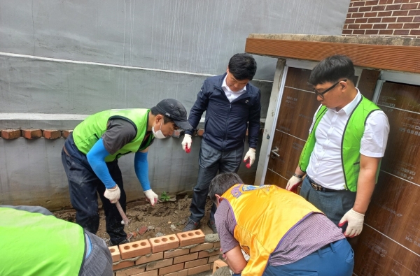 이날 활동은 달빛마을공동체 회원 및 자원봉사자 등 20여명이 참여해 빌라 화단 조성을 위한 벽돌쌓기와 일부 구역 페인트 작업을 실시했다.