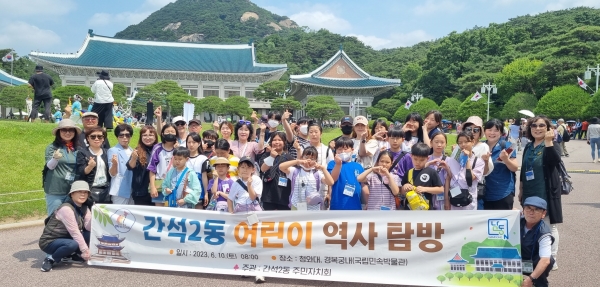 이날 역사탐방에서는 주민자치회 위원 및 지역아동센터 아동 등 40여명이 참석해, 오전에는 청와대, 오후에는 경복궁과 국립민속박물관을 방문했다.