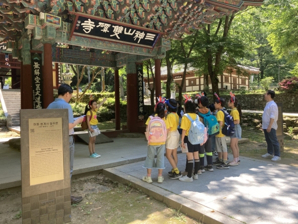 토지초 학생들은 친구에게 듣는 재미있는 역사해설을 듣고 정답을 맞추면서 쌍계사의 역사와 우리 문화유산의 소중함을 느꼈다.
