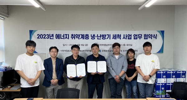 [금요저널] 사회적협동조합 인천부평남부지역자활센터는 지난 9일 센터 회의실에서 인천삼산LH1단지 주거행복지원센터와 ‘에너지 취약계층 냉·난방기 유지보수사업’ 업무 협약을 체결했다.