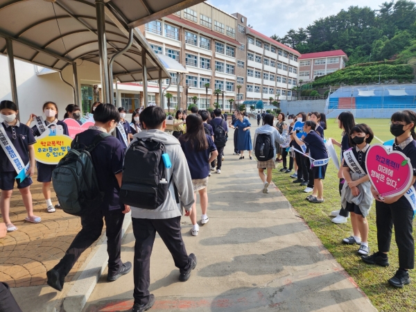 캠페인에 참여한 해성중학교 위클래스 또래상담부장 전다빈 학생은“뜻깊은 활동에 참여할 수 있어서 정말 좋았고 이번 캠페인을 통해 학생들이 서로 잘 지내서 학교폭력이 사라지는 계기가 되면 좋겠다”고 활동 소감을 밝혔다.