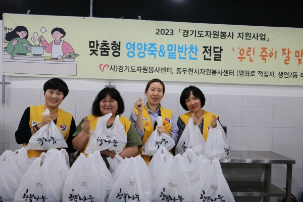 자원봉사센터는 월 2회 평화로적십자와 생연2동적십자에서 ‘우린 죽이 잘 맞아~’사업을 실시하고 있으며 매번 다른 영양죽과 밑반찬을 만들어 전달하면서 안부를 살피는 등 취약계층 대상자 맞춤형 복지 서비스 제공에 앞장서고 있다.