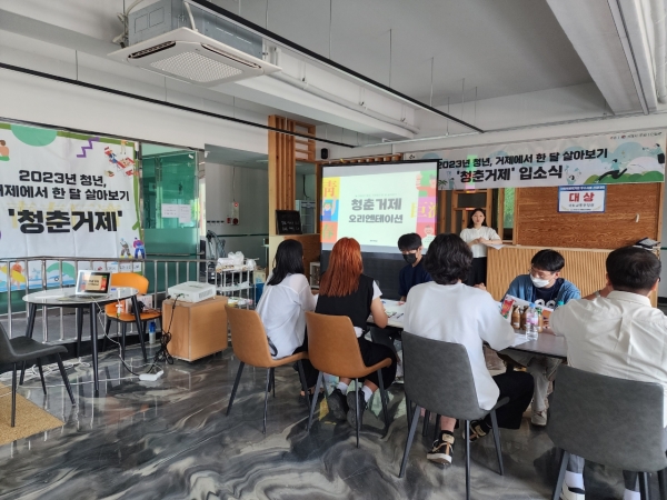 [금요저널] 거제시는 지난 3월 ‘2023년 청년, 거제에서 한 달 살아보기’사업을 운영할 보조사업자를 선정하고 5월에 1기 참여청년 12명을 모집해 지난 6월 12일 입소식을 개최했다.