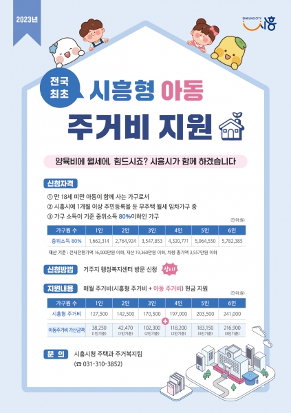 시흥형 주거비 지원 사업은 시흥시에 거주하고 있는 무주택 월세 가구의 주거비 부담을 덜고 주거취약가구의 주거상향을 지원하고자 시행 중이다.