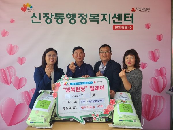 [금요저널] 오산시 신장동은 지난 13일 오산시지속가능발전협의회에서 지역사회 어려운 이웃에게 전달해달라며 백미 10kg 10포를 기탁했다고 밝혔다.