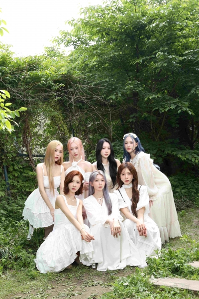 또 다른 이미지에서 드림캐쳐는 화이트 톤의 스타일링과 글로시 메이크업으로 청순미를 자랑한 것은 물론, 푸릇푸릇한 나무로 싱그러움을 더해 숲의 요정 같은 매력까지 드러내고 있다.