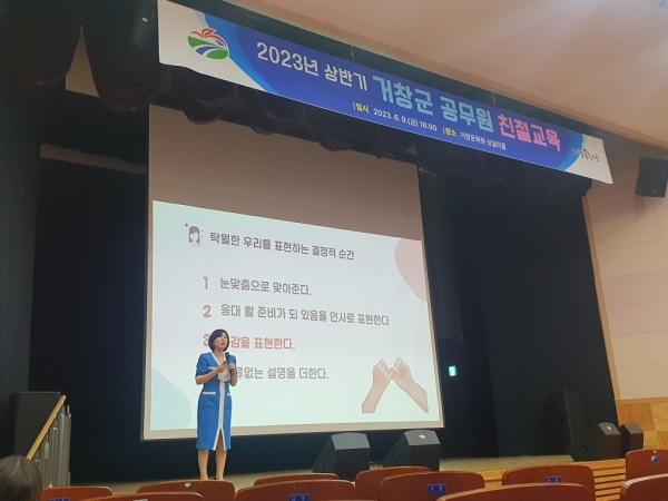 이번 교육은 민선 8기 군민 행복시대에 맞춰 친절 행정을 추진하고 동료 직원 간 친절을 바탕으로 한 배려와 존중의 문화를 확산하기 위해 마련됐다.