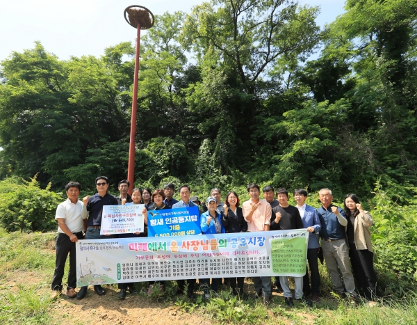 [금요저널] 안중황새가족지킴이모임은 지난 9일 천연기념물 제199호 및 멸종위기 야생생물 I급인 황새의 번식을 돕는 둥지탑을 평택시에 기증했다.