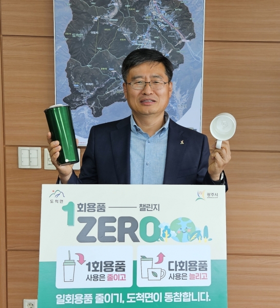 [금요저널] 광주시 서준규 도척면장이 12일 일상 속 일회용품 줄이기 실천을 약속하는 ‘일회용품 제로 챌린지’를 진행했다.