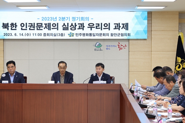 [금요저널] 민주평화통일자문회의 함안군협의회는 14일 군청 별관3 층 회의실에서 이병철 함안부군수를 비롯한 자문위원 등 30여명이 참석한 가운데 2023년 2분기 정기회의를 개최했다.