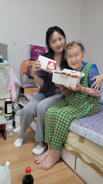 치킨을 배달받은 신희 어르신은“치킨이 먹고 싶다고 말했는데 정말 이루어졌다.