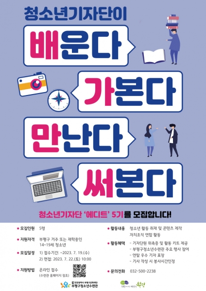 부평구 청소년수련관, 청소년 활동 소식 전하는 청소년기자단 5기 신규단원 모집