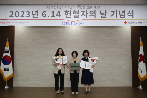[금요저널] 합천군은 지난 14일 대한적십자사 경남지사에서 개최된 ‘2023년 6.14 헌혈자의 날’ 기념행사에서 헌혈문화 확산과 혈액 수급 안정화에 기여한 기관과 군민에 표창을 수여했다.