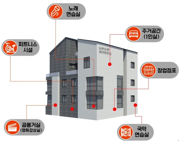 공용거실 노래연습실, 체력단련실 등의 시설이 공간에 같이 들어설 예정이다.