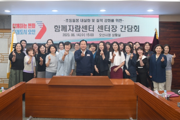 [금요저널] 오산시는 지난 14일 시청사 내에서 초등돌봄 내실화 및 서비스의 질적 향상을 하고자 ‘함께자람센터 센터장·종사자 간담회’를 개최했다고 밝혔다.