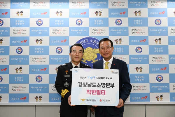 [금요저널] 경상남도 소방본부는 15일 사랑의열매 경남 사회복지공동모금회에서 추진하는 ‘일상회복 착착착 나눔캠페인’ 경남 1호 전달식을 가졌다고 밝혔다.