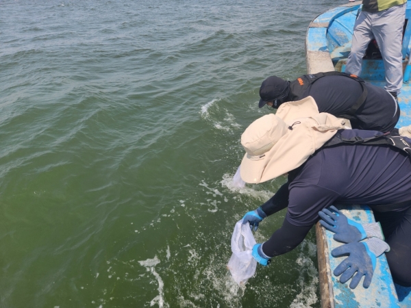 [금요저널] 시흥시는 지난 15일 오이도 앞 해상에 경기도해양수산자원연구소에서 보급 받은 어린 주꾸미 2만 마리를 방류했다.