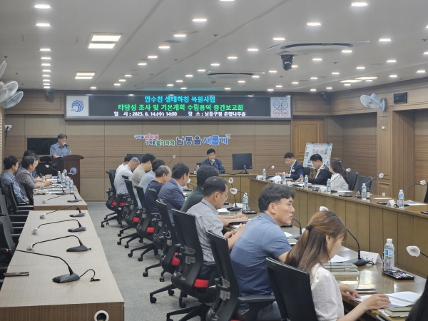 [금요저널] 인천시 남동구는 최근 구청 은행나무홀에서 ‘만수천 생태하천 복원사업 타당성 조사 및 기본계획 수립 용역’ 중간보고회를 개최했다고 16일 밝혔다.