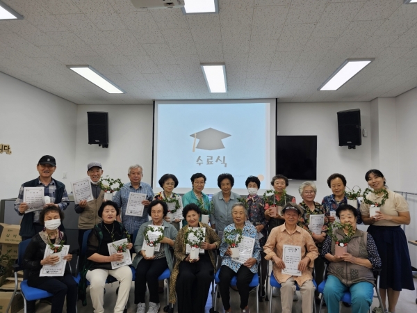 이번 수료식은 사후 검사 후 수료증을 수여하고 결석 없이 수업에 출석한 참여자에게는 개근상과 기념품을 전달하며 단체사진 촬영으로 마무리됐다.