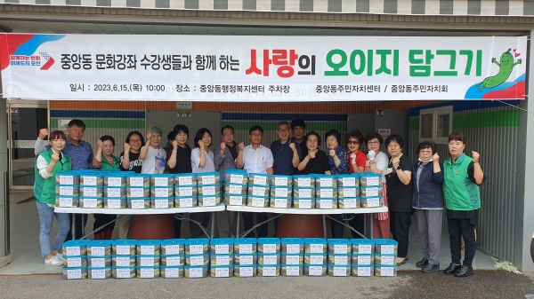모승배 중앙동 주민자치회장은 “중앙동 어려운 이웃을 위해 앞으로도 다양한 방법으로 지속 노력하겠다”며 “많은 분들과 함께 열심히 만든 오이지를 여름내 맛있게 드셔주셨으면 좋겠다”고 전했다.