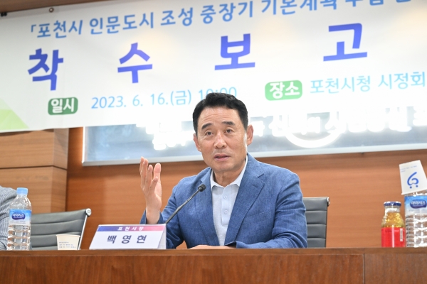 [금요저널] 포천시는 16일 백영현 포천시장과 손세화 포천시의원, 양호식 인문도시조성추진협의회 공동위원장 및 각계각층의 단체장 20여명이 참석해 ‘포천시 인문도시 조성 중장기 기본계획 수립 연구용역’ 착수보고회’를 개최했다.