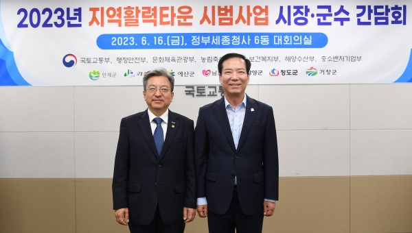[금요저널] 구인모 거창군수는 지난 16일 국토교통부가 주관하는 2023년 지역활력타운 시범사업 선정 지자체장 간담회에 참석해 살기좋은 지역만들기를 위한 지역활력타운 정책 추진방안과 협력체계 구축 및 역할 분담, 후속 일정 등에 대해 논의했다.